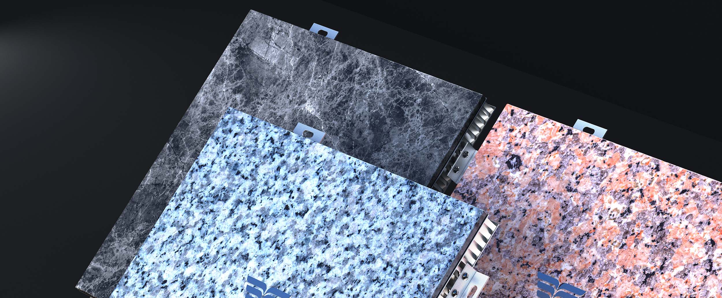 石材蜂窩板一般由3-5mm厚的石材薄板與10-25mm厚的鋁蜂窩板通過膠粘劑復合而成。這種復合結構既保留了石材的裝飾質感,又克服了天然石材重量大、易碎等缺陷。